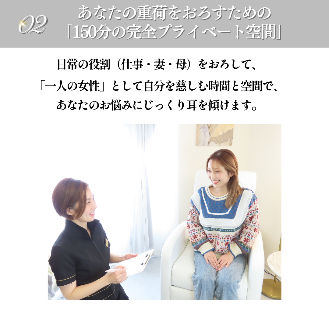 A. 大変申し訳ございませんが、当サロンは女性のお客様が心から安心して悩みを打ち明け、リラックスできる環境づくりを徹底しているため、【完全女性専用】のプライベートサロンとなっております。